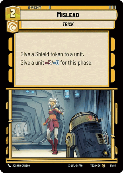 Give a Shield token to a unit. Give a unit -3/-0 for this phase.