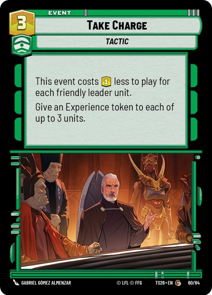 This event costs 1 less to play for each friendly leader unit. Give an Experience token to each of up to 3 units.