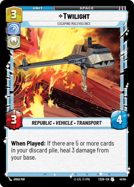 When Played: If there are 5 or more cards in your discard pile, heal 3 damage from your base.