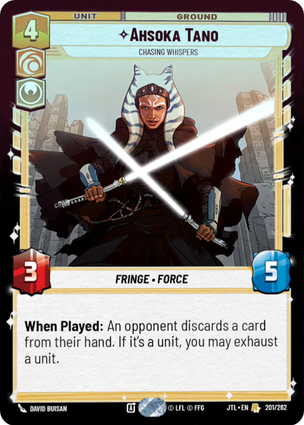 When Played: An opponent discards a card from their hand. If it's a unit, you may exhaust a unit.