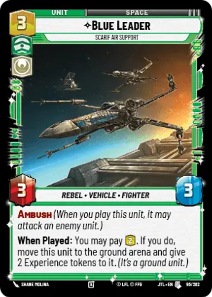 When Played: You may pay 2. If you do, move this unit to the ground arena and give 2 Experience tokens to it. (It's a ground unit.)