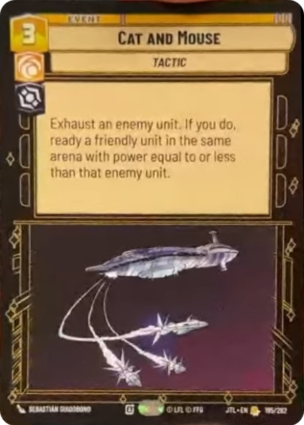 Exhaust an enemy unit. If you do, ready a friendly unit in the same arena with power equal to or ress than that enemy unit.