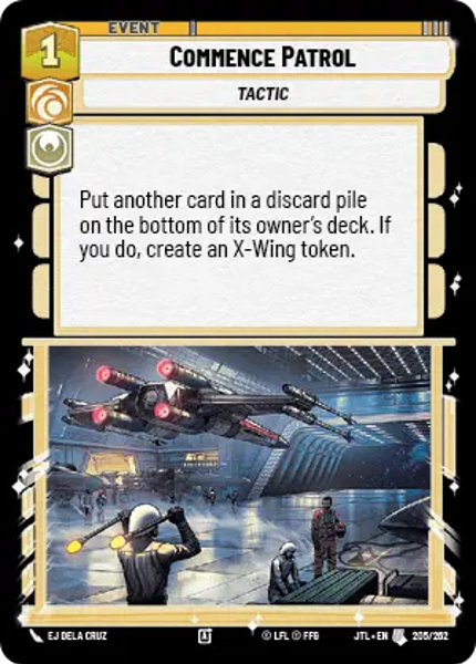 Put another card in a discard pile on the bottom of its owner's deck. If you do, create an X-Wing token.