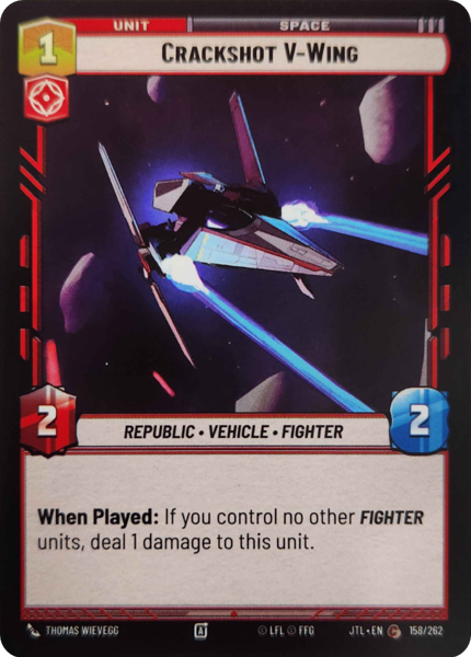 When Played: If you control no other Fighter units, deal 1 damage to this unit.
