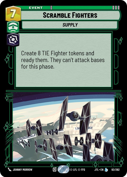 Create 8 TIE Fighter tokens and ready them. They can't attack bases for this phase.