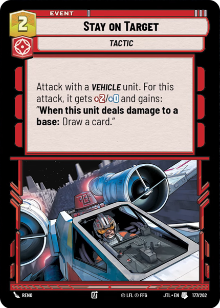 Attack with a Vehicle unit. For this attack, it gets +2/+0 and gains: "When this unit deals damage to a base: Draw a card."