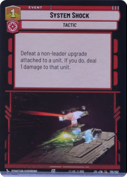 Defeat a non-leader upgrade attached to a unit. If you do, deal 1 damage to that unit.