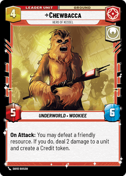 On Attack: You may defeat a friendly resource. If you do, deal 2 damage to a unit and create a Credit token.