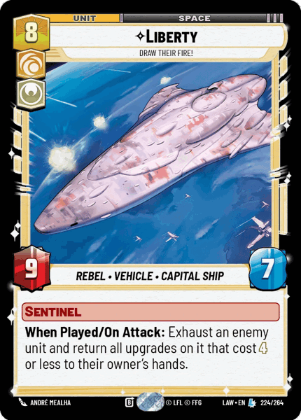 Sentinel When Played/On Attack: Exhaust an enemy unit and return all upgrades on it that cost 4 or less to their owner's hands.