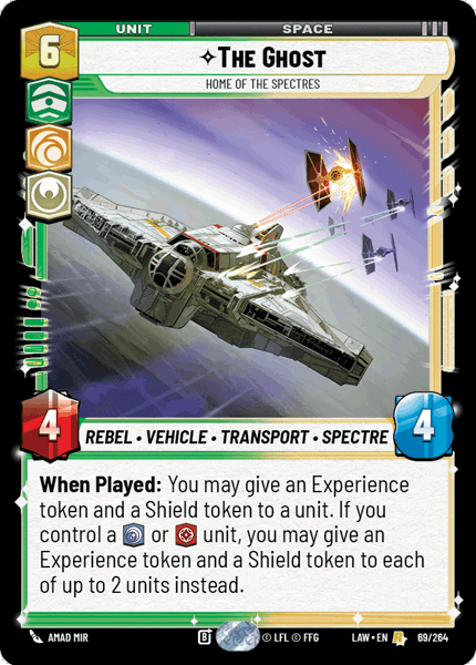 When Played: You may give an Experience token and a Shield token to a unit. If you control a [vigilance] or [aggression] unit, you may give an Experience token and a Shield token to each of up to 2 units instead.