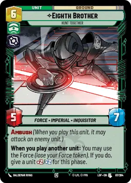 When you play another unit: You may use the Force (lose your Force token). If you do, give a unit +2/+2 for this phase.