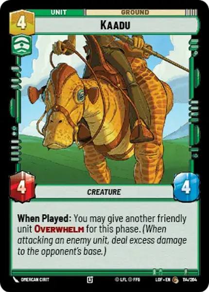 When Played: You may give another friendly unit Overwhelm for this phase. (When attacking an enemy unit, deal excess damage to the opponent's base.)