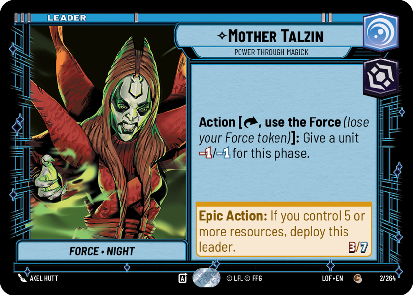 Hero Ability: Action [[tap], use the Force (lose your Force token)]: Give a unit -1/-1 for this phase.