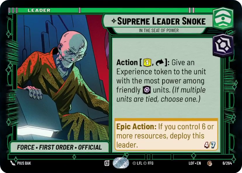 Epic Action: If you control 6 or more resources, deploy this leader.