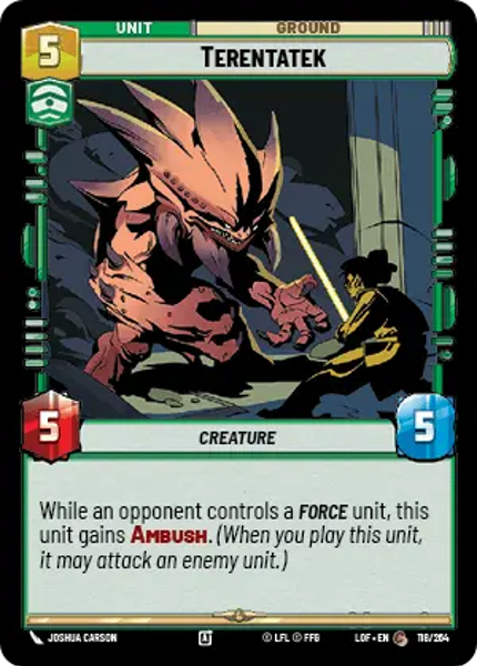 While an opponent controls a Force unit, this unit gains Ambush. (When you play this unit, it may attack an enemy unit.)