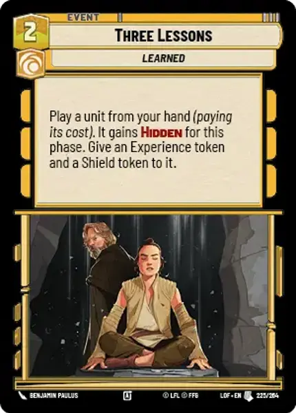 Play a unit from your hand (paying its cost). It gains Hidden for this phase. Give an Experience token and a Shield token to it.