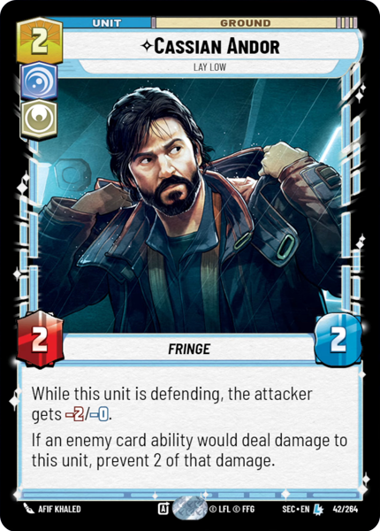 While this unit is defending, the attacker gets -2/-0. If an enemy card ability would deal damage to this unit, prevent 2 of that damage.
