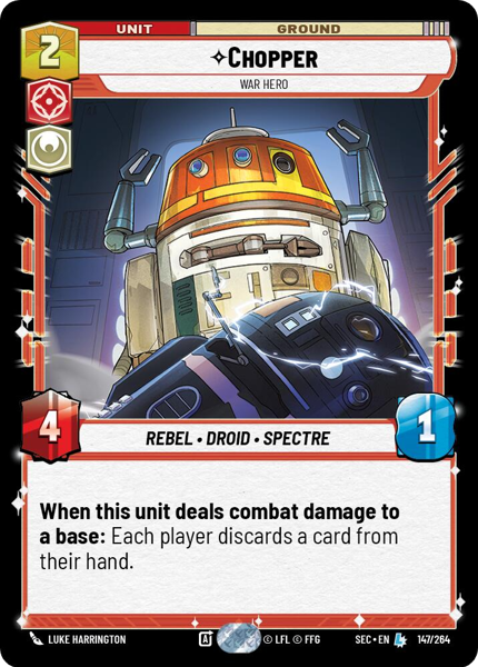 When this unit deals combat damage to a base: Each player discards a card from their hand.