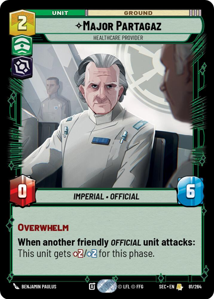 Overwhelm When another friendly Official unit attacks: This unit gets +2/+2 for this phase.