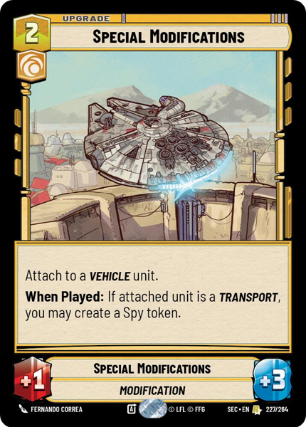 Attach to a Vehicle unit. When Played: If attached unit is a Transport, you may create a Spy token.