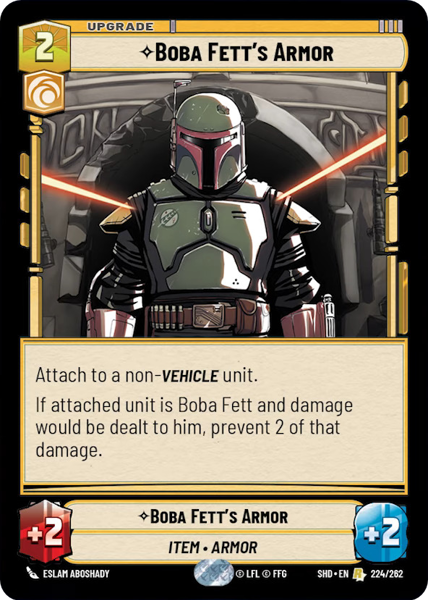 If attached unit is Boba Fett and damage would be dealt to him, prevent 2 of that damage.