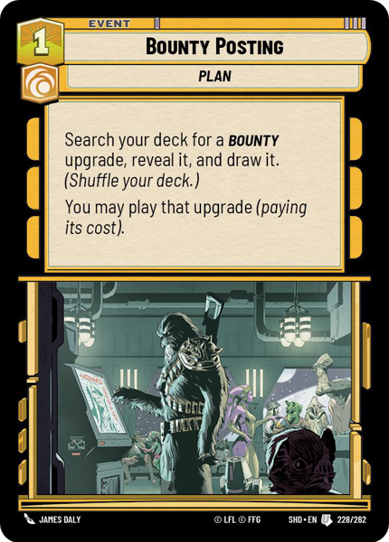 Search your deck for a Bounty upgrade, reveal it, and draw it. (Shuffle your deck.)