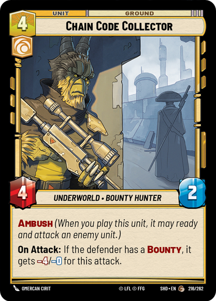 On Attack: If the defender has a Bounty, it gets -4/-0 for this attack.