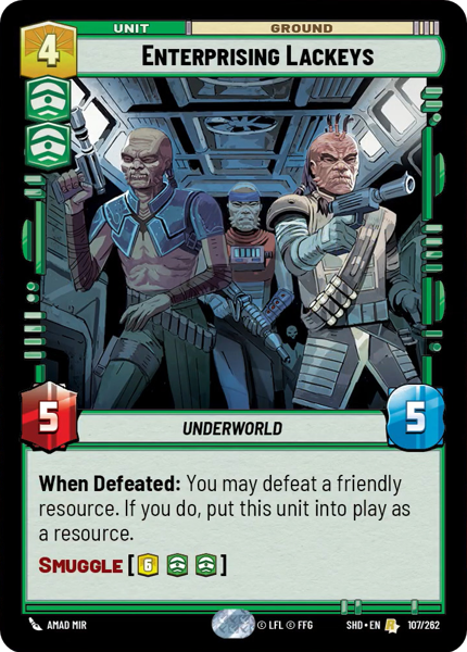 When Defeated: You may defeat a friendly resource. If you do, put this unit into play as a resource.
