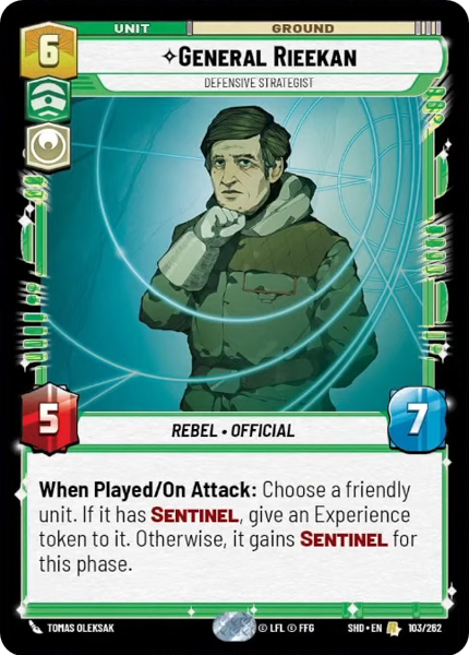 When Played/On Attack: Choose a friendly unit. If it has Sentinel, give an Experience token to it. Otherwise, it gains Sentinel for this phase.