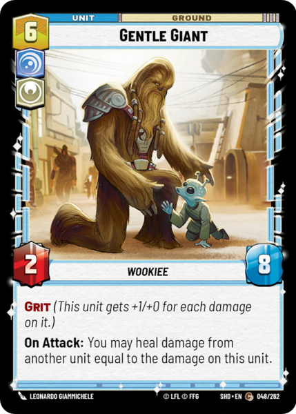 On Attack: You may heal damage from another unit equal to the damage on this unit.