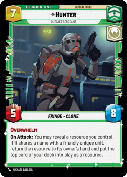 On Attack: You may reveal a resource you control. If it shares a name with a friendly unique unit, return the resource to its owner's hand and put the top card of your deck into play as a resource.