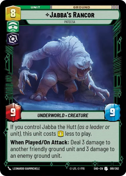 If you control Jabba the Hutt (as a leader or unit), this unit costs 1 less to play.
