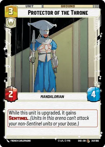 While this unit is upgraded, it gains Sentinel. (Units in this arena can't attack your non-Sentinel units or your base.)