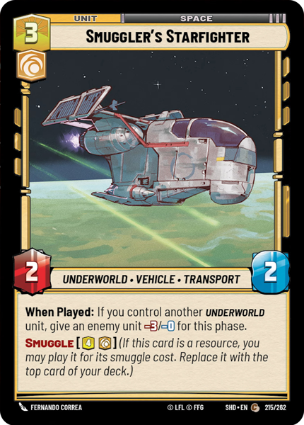 When Played: If you control another Underworld unit, give an enemy unit -3/-0 for this phase. Smuggle [4, [cunning]] (If this card is a resource, you may play it for its smuggle cost. Replace it with the top card of your deck.)