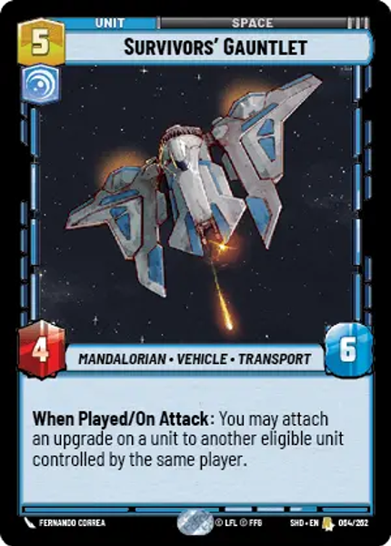 When Played/On Attack: You may attach an upgrade on a unit to another eligible unit controlled by the same player.