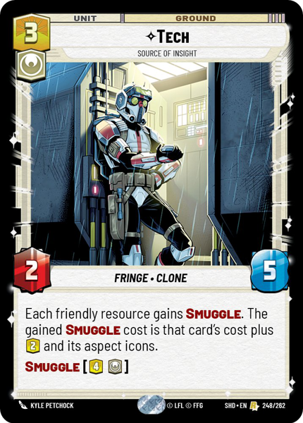 Each friendly resource gains Smuggle. The gained Smuggle cost is that card's cost plus 2 and its aspect icons.