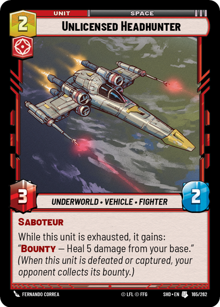 While this unit is exhausted, it gains: "Bounty - Heal 5 damage from your base." (When this unit is defeated or captured, your opponent collects its bounty.)