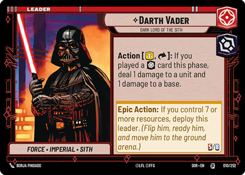Epic Action: If you control 7 or more resources, deploy this leader. (Flip him, ready him, and move him to the ground arena.)