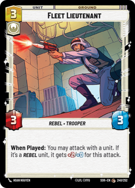 When Played: You may attack with a unit. If it's a Rebel unit, it gets +2/+0 for this attack.