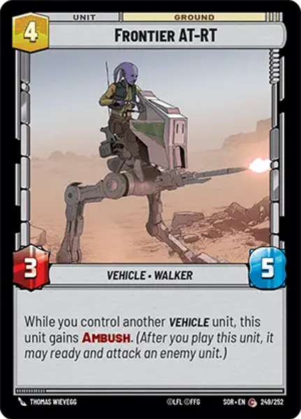 While you control another Vehicle unit, this unit gains Ambush. (After you play this unit, it may ready and attack an enemy unit.)