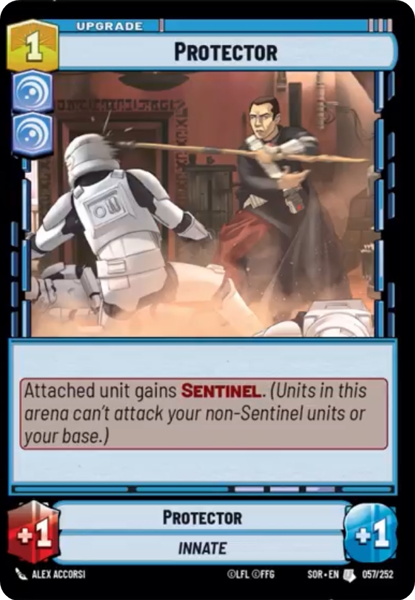 Attached unit gains Sentinel. (Units in this arena can't attack your non-Sentinel units or your base.)