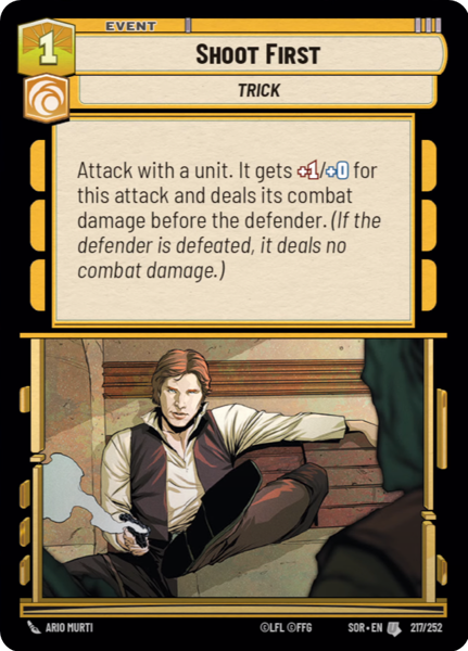 Attack with a unit. It gets +1/+0 for this attack and deals its combat damage before the defender. (If the defender is defeated, it deals no combat damage.)