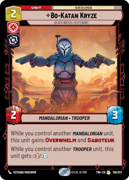 While you control another Mandalorian unit, this unit gains Overwhelm and Saboteur.