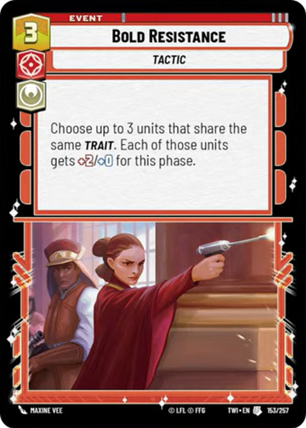Choose up to 3 units that share the same Trait. Each of those units gets +2/+0 for this phase.