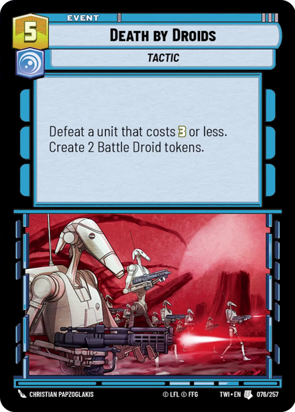 Defeat a unit that costs 3 or less. Create 2 Battle Droid tokens.