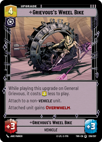 While playing this upgrade on General Grievous, it costs 2 less to play.