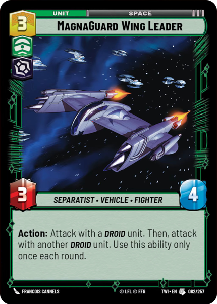 Action: Attack with a Droid unit. Then, attack with another Droid unit. Use this ability only once each round.