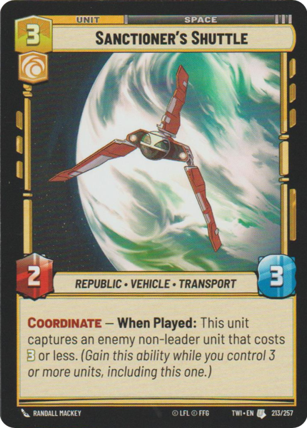 Coordinate - When Played: This unit captures an enemy non-leader unit that costs 3 or less. (Gain this ability while you control 3 or more units.)