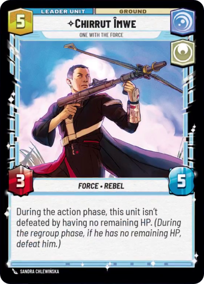The concept of this deck is super simple. The plan is to use Hans Solo's ability to ramp out Chirrut. Then when Chirrut is out, the goal is to use all of your upgrades on him. Chirrut's ability will allow for him to be close to unkillable, and he will become massive. Then use him to one shot an opponent.
